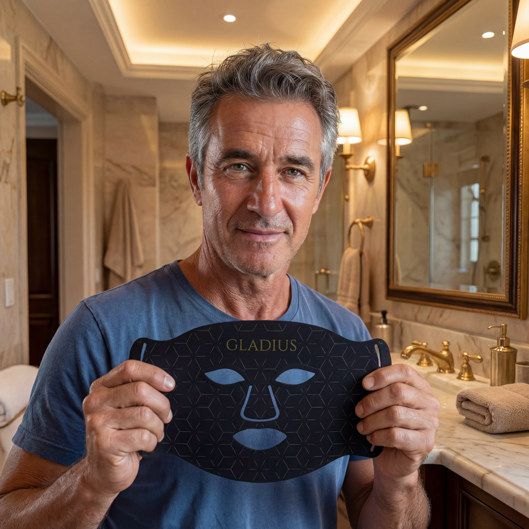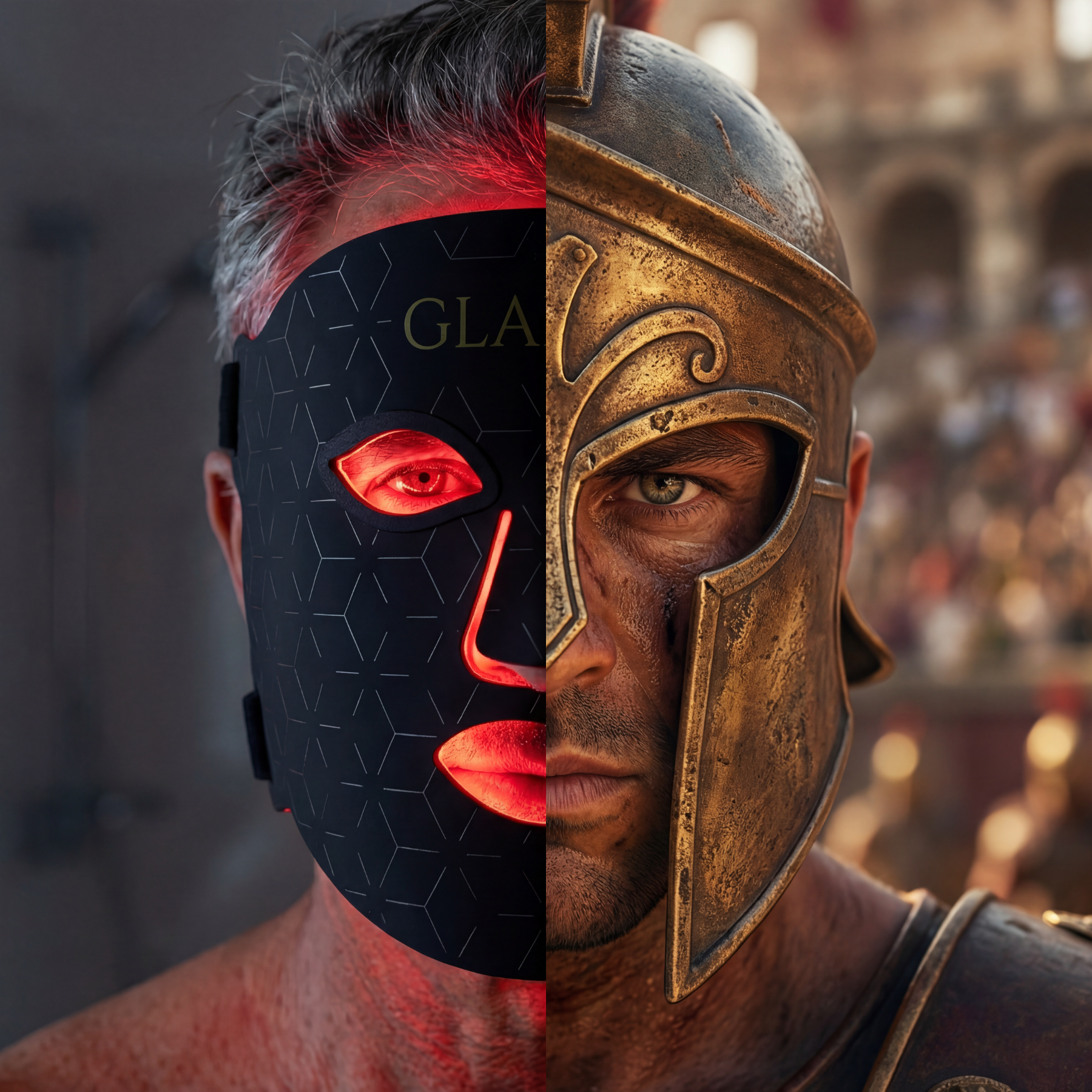 The tri-wavelength light therapy mask designed specifically for men. Not a beauty product. A discipline system.